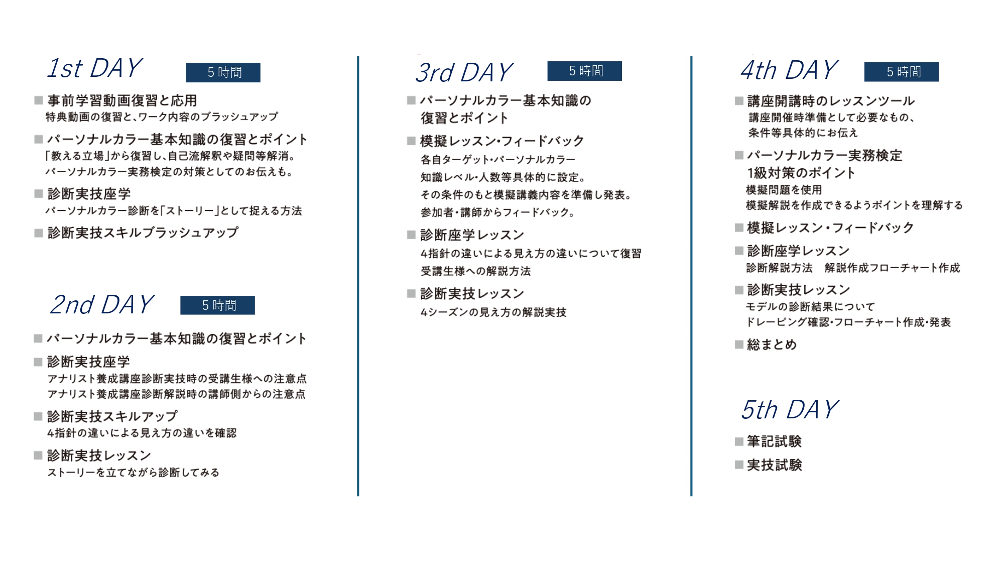 「パーソナルカラー実務検定1級」の対策講座と、診断実技指導ができるレベルを目指します。