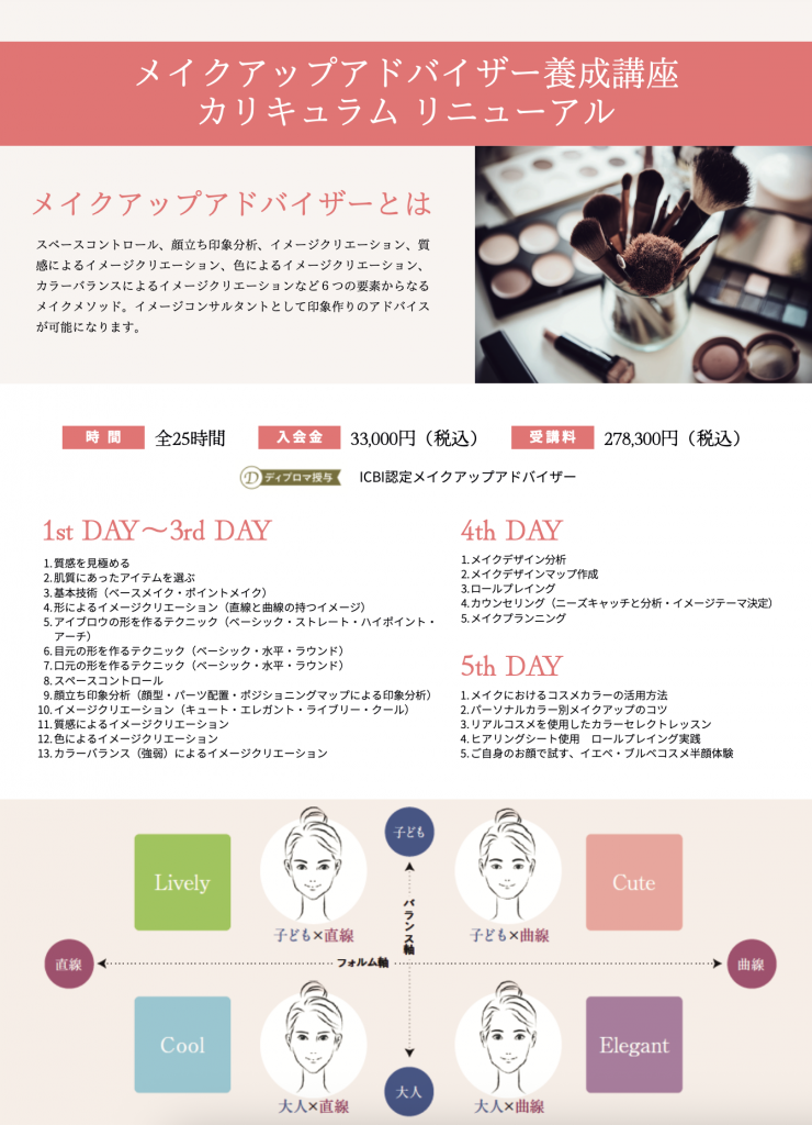 「メイクアップアドバイザー養成講座」のカリキュラムが