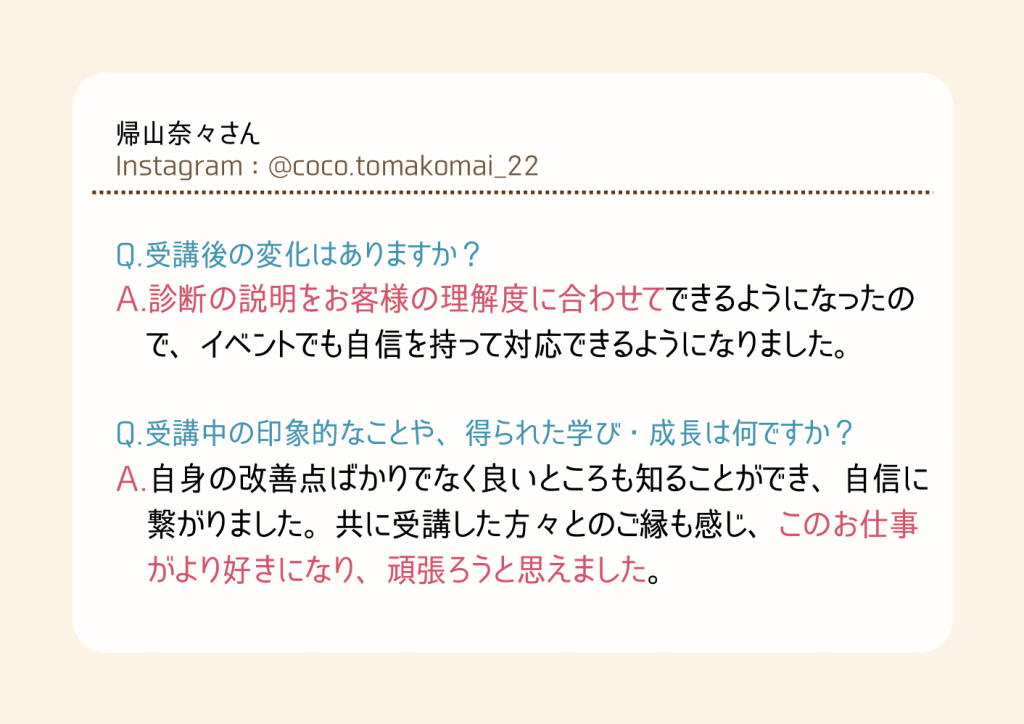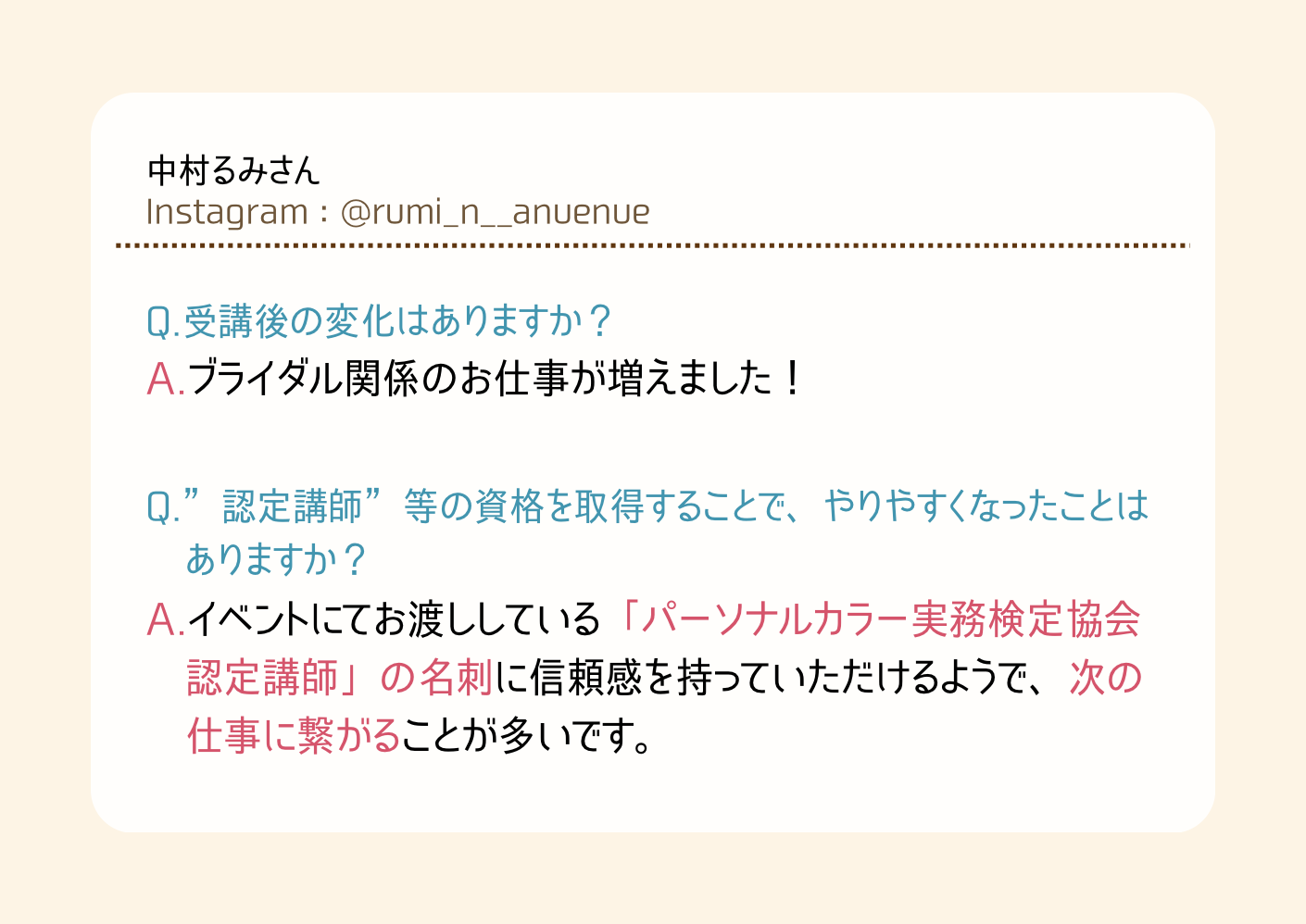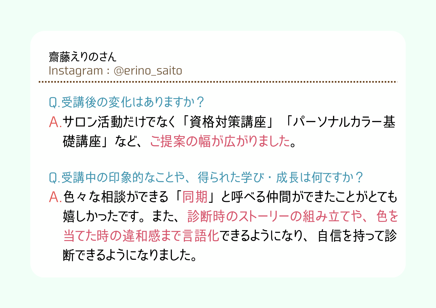 【パーソナルカラー講師養成プログラム】ご修了生の皆様に聞いてみました!