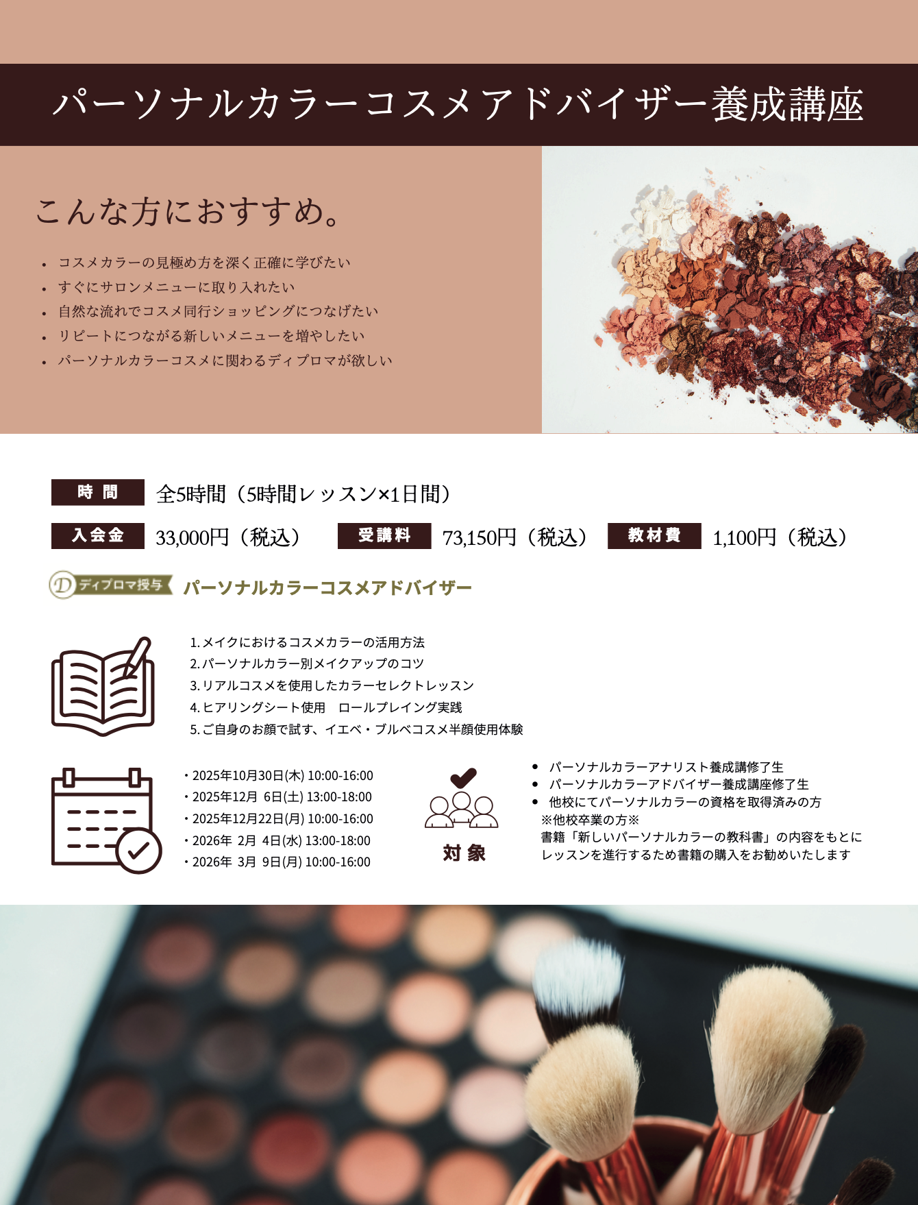 ↓パーソナルカラーコスメアドバイザー養成講座のお申込はこちら↓