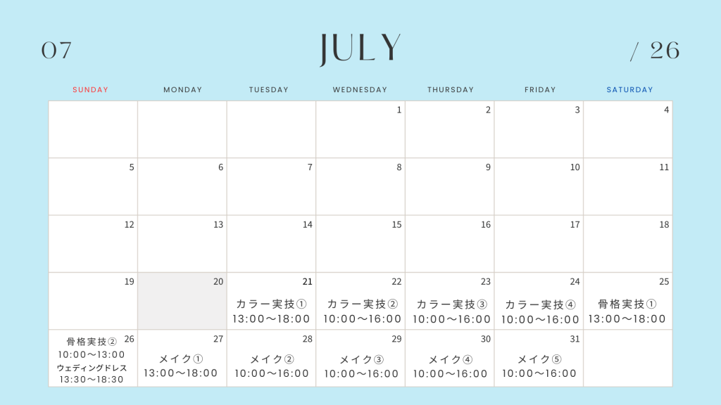 【2026年7月開講 おまとめクラス 開講日程】